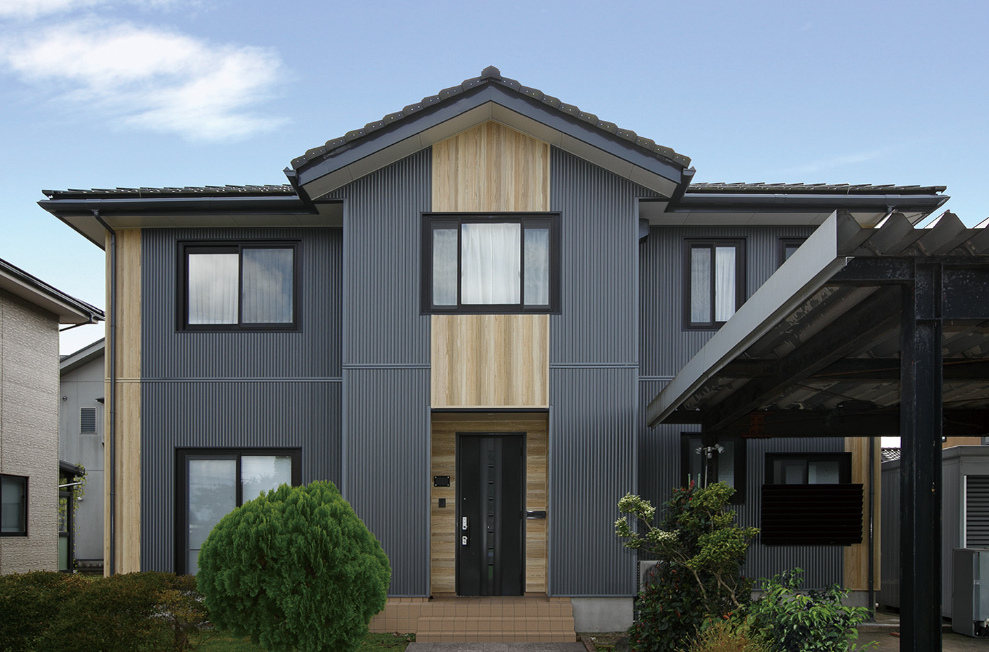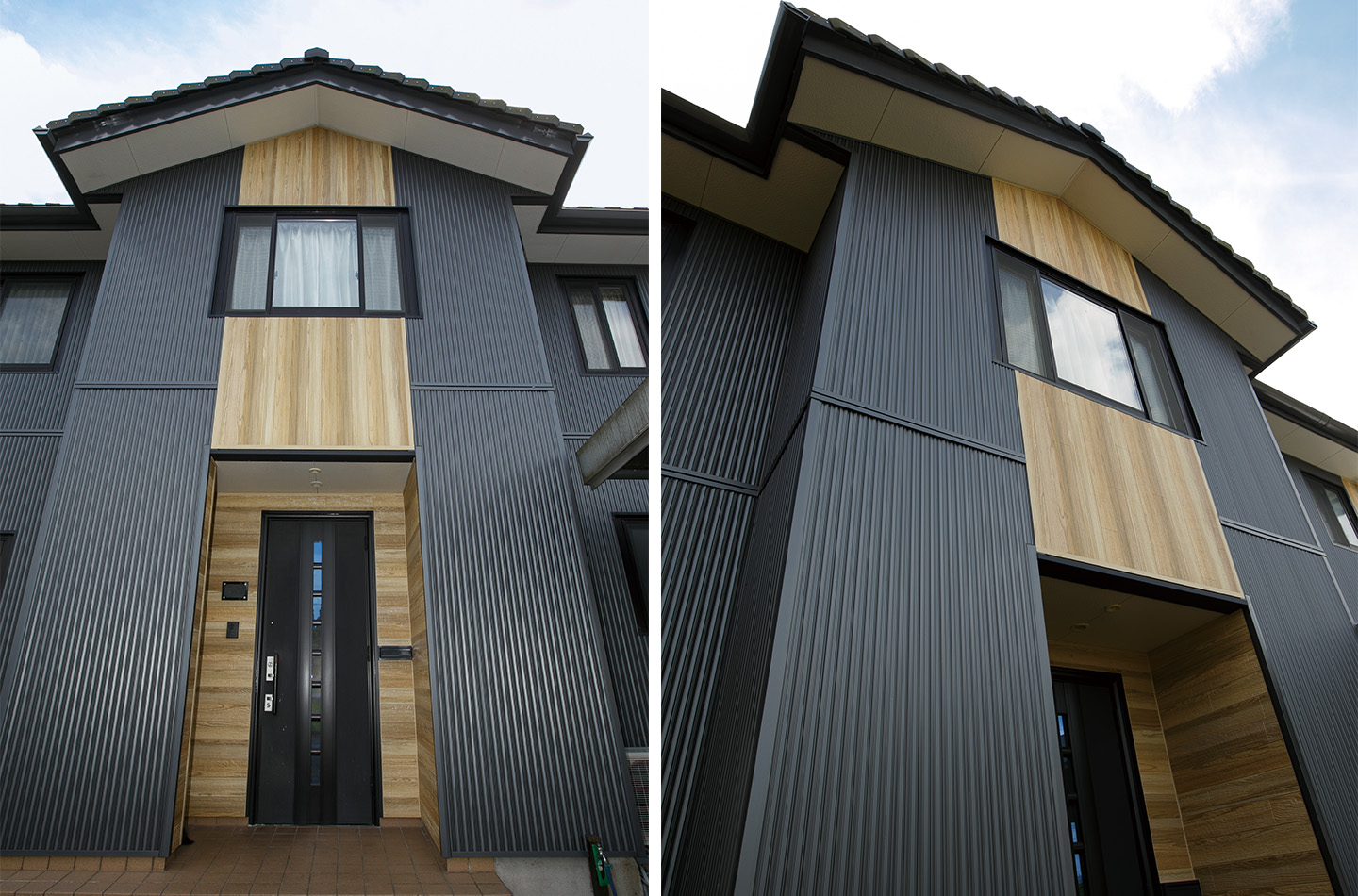 リフォーム 現代風 印刷する 前のページ 光の当たり方によって陰影感の出方が異な るジオストライプSをベースに、アクセントは プレシャスウッドⅡSFを使用しました。 使用している商品 WEBFG2078 ジオストライプS エストガンメタルBF WEDHM2103 プレシャスウッドⅡSF SWプレシャスベージュF+ 前の事例