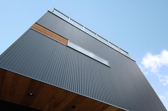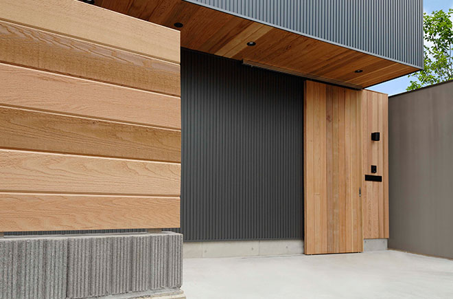 新築 現代風×MINIMAL 印刷する 前のページ 次のページ モダンなフォルムを強調するスパンサイディングSの張り分け。明るめの木目のセレクトも抜群です。 使用している商品 WYZZ268BF スパンサイディングS スモーキーブルーBF WYZZ221BF スパンサイディングS ガンメタリックBF 前の事例 次の事例