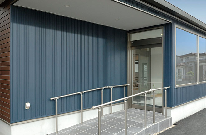 新築 印刷する 前のページ 次のページ 個性的な造形に、スモーキーブルーのスパンサイディングSがマッチした外観です。 使用している商品 WEBAG2049 スパンサイディングS エストブルーBF 前の事例 次の事例