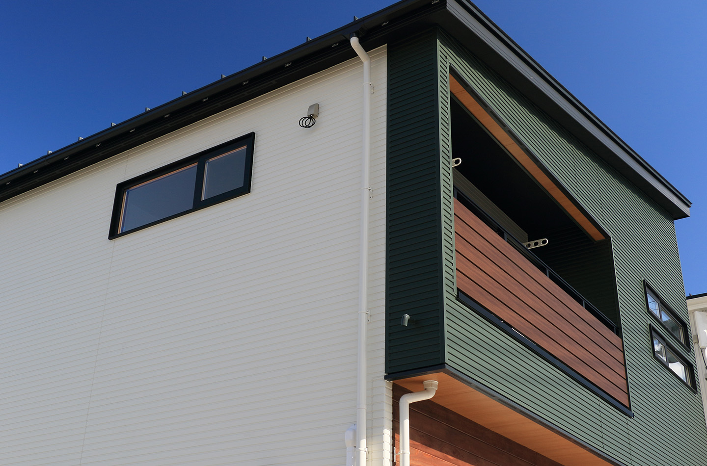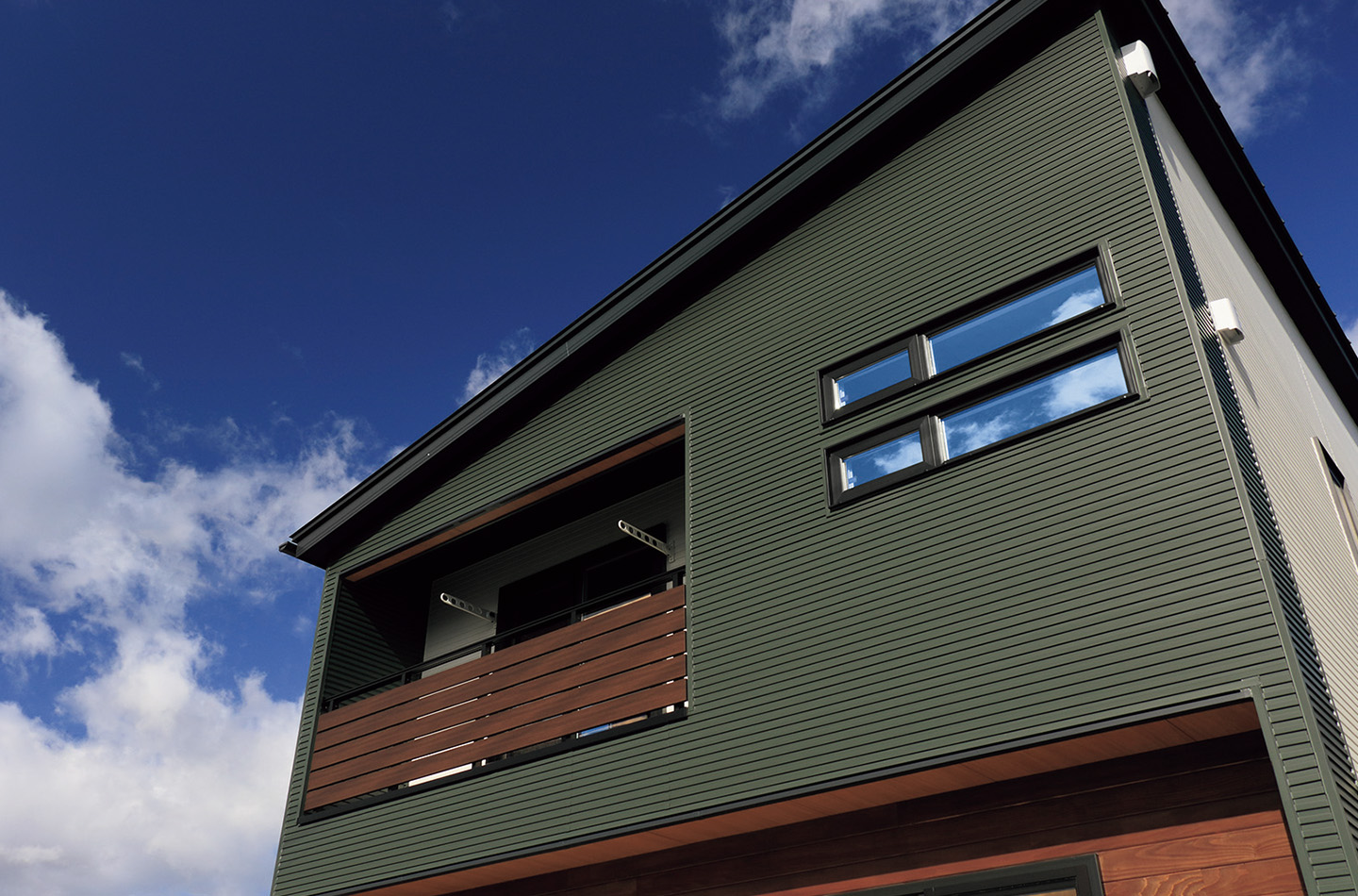新築 現代風×INDIVITY 印刷する 前のページ 次のページ 天然木とエストグリーンを 1階と2階で張り分けた 安定感のあるデザイン。 使用している商品 WEBAG2080 スパンサイディングS エストグリーンBF ASC5KSW1S アーバンストライプ15 カーサホワイト 前の事例 次の事例