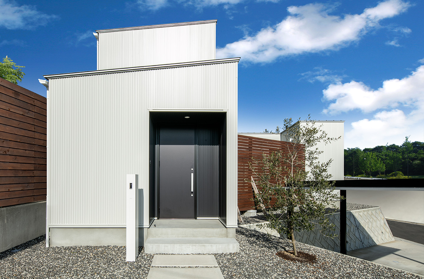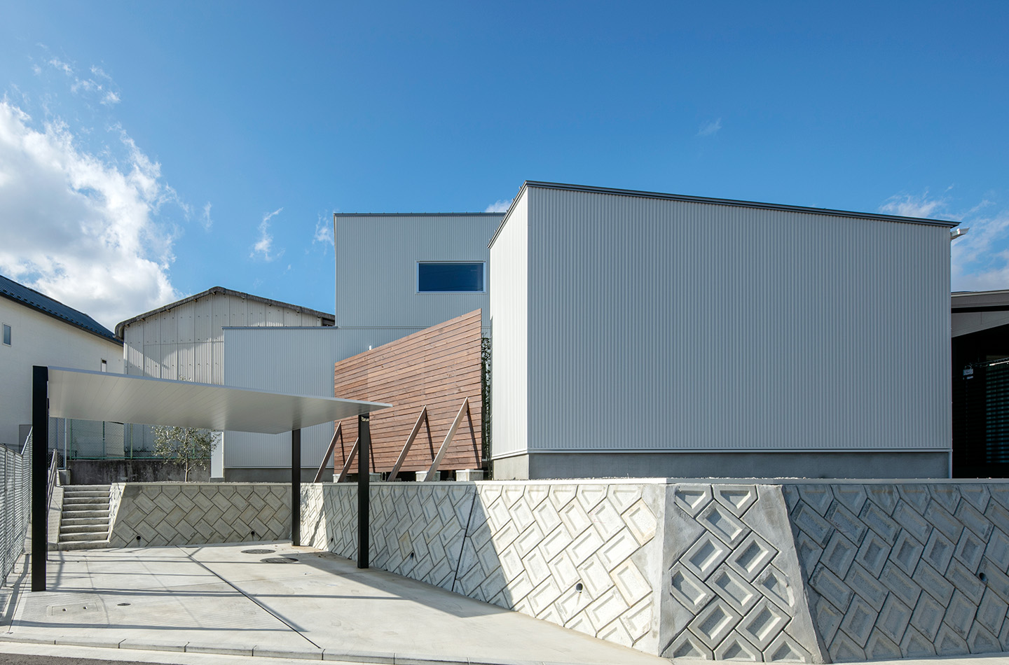 新築 現代風×MINIMAL 印刷する 前のページ 次のページ 白いキューブの 組み合わせが面白い、 モダンな住宅。 使用している商品 WEBAG2050 スパンサイディングS エストホワイトBF 前の事例 次の事例