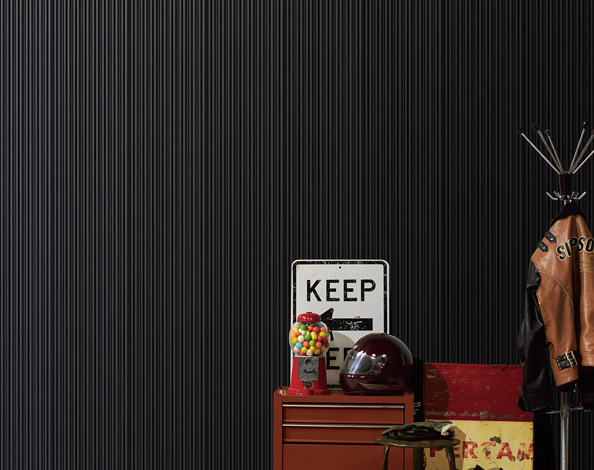 スリムなリブを広いピッチで配置したボーダーデザインです。リブの間(凹部)のわずかな波形状により光の当たり方で違った表情を見せます。