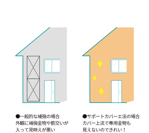 ※サポートカバーエ法による耐力向上の効果は、既存建吻の状況によリ異なリます。