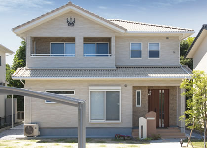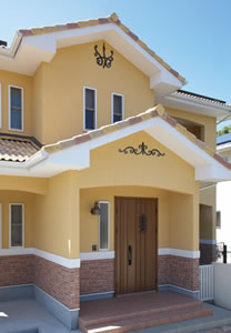 妻飾りがアクセントとなり、華やかな洋風の外観を演出しています。