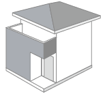 玄関周りをアクセントとして張り分ける方法です。平屋や比較的スケールの小さな住宅の外観に適した張り分けです。