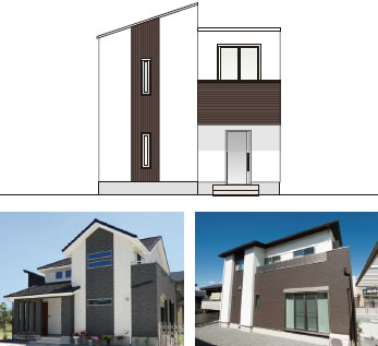 張り分ける壁面に凹凸を作り張り分けるデザインです。陰影が生まれ、立体感に富んだ表情豊かな外観になります。