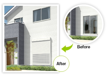 今ある窓に付けられる、リフォームシャッター。短時間の簡単施工で、外観の仕上がりもすっきりキレイ。さまざまな外壁や納まりに対応可能です。