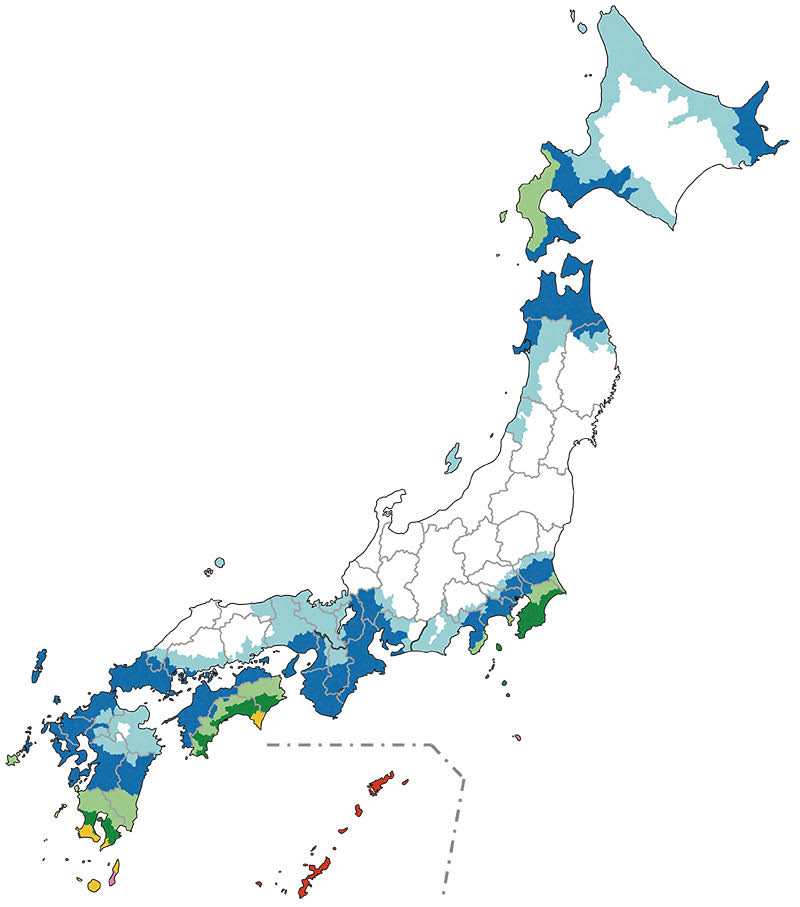 なお、市町村の合併等で基準風速が変更になっている場合がございます。