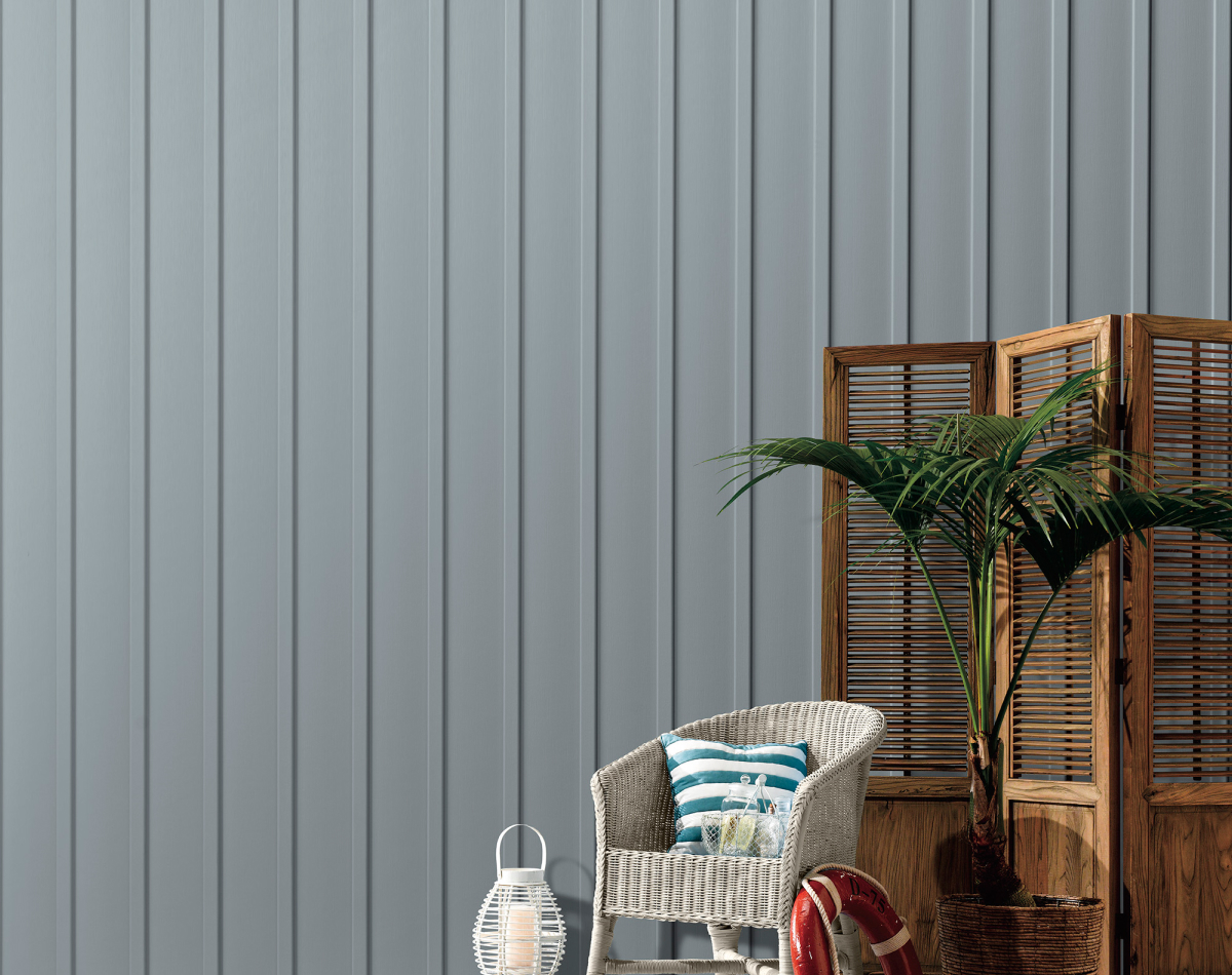 太めのリブが特徴的な縦張り柄。海外の住宅でよくみられる、板と細長い角材を交互に張った外観デザイン。